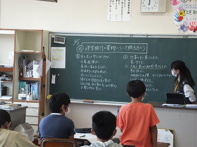 ワークシートに書いたあと、黒板に振り返りを書きました。
