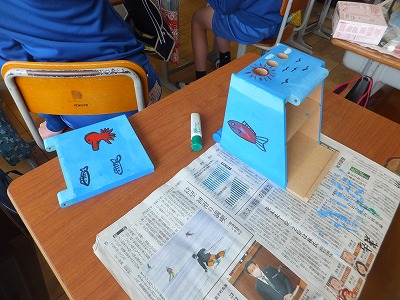 図工で作ったランプをみんなで一斉に点灯してみました。