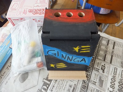 輪ゴムを鳴らすので、いい音とまではいきませんでしたが、自分の作った楽器で嬉しそうに音を出していました。