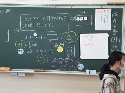 0.23×4の計算の仕方を説明できるようになるというのが、今日のめあてです。