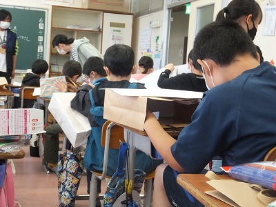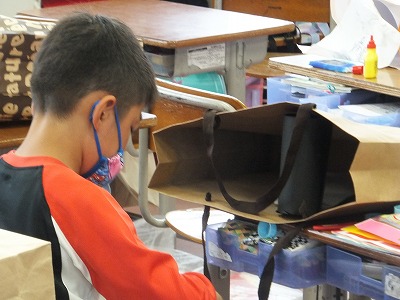 紙の手提げ袋の中に、自分で考えた世界を作っていく学習です。