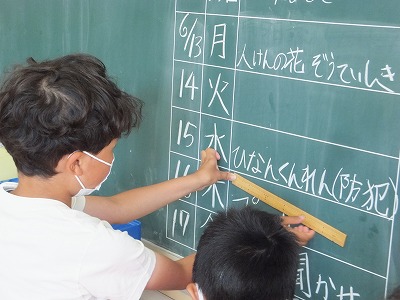 ワークシートに書いたあと、黒板に振り返りを書きました。
