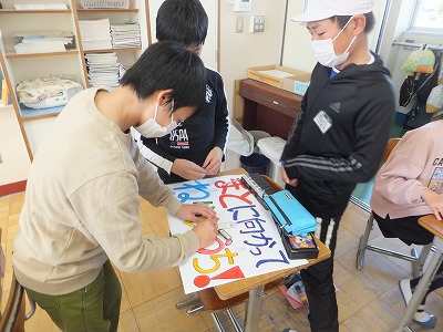 本番に向けて、中と外で役割を分担して準備を進めています。こういう活動を通して子供たちは成長していきます。教科の授業はもちろん大切ですが、このような行事は、教科の学習を総合的に生かす場です。本番まで準備できるのは6日です。頑張って下さ荷ね。