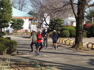 グランドコンディションが良くなかったので、体育館でリレーをしました。