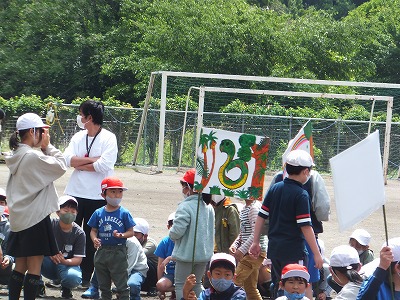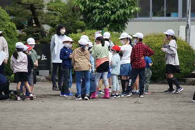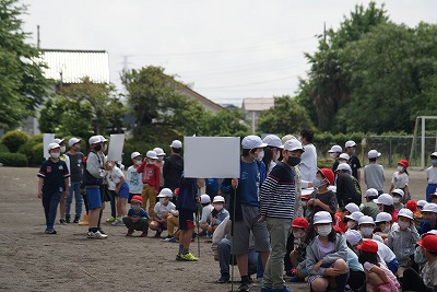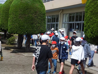 最後に注意を聞いて終了です。楽しい全校遠足にしましょうね。