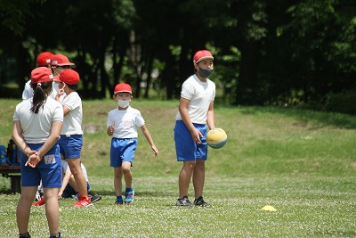 投げることよりもキャッチの方が難しいですが、上手にキャッチできている子が多かったです。