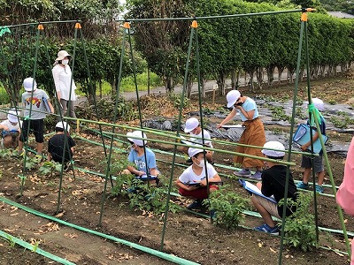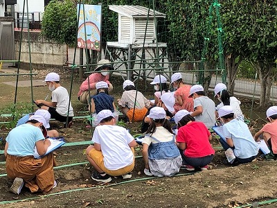 生活科で野菜の様子を観察しています。早く大きくならないかな。