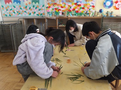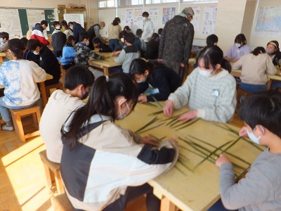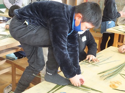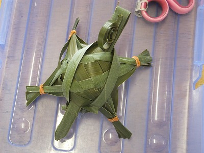 今日は、上野長一先生にシュロ細工を教えていただきました。