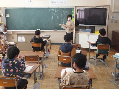 1・2組合同で冬休みの過ごし方について指導しました。