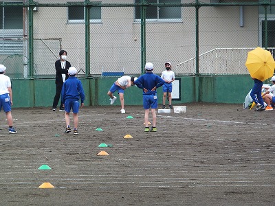 外に移動して、ソフトボール投げです。みんな力がついてきました。