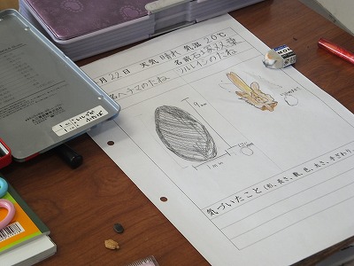 これから育てるヘチマやゴーヤのたねの観察をしました。