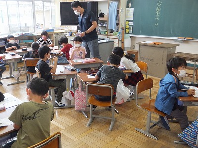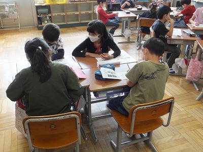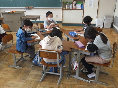 遠足での役割の確認や約束について、班ごとに話し合っています。