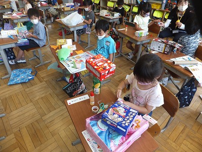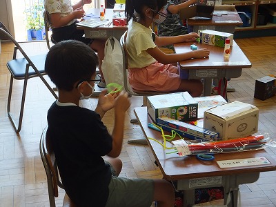 箱の形を生かして、自由に工作をしていきます。