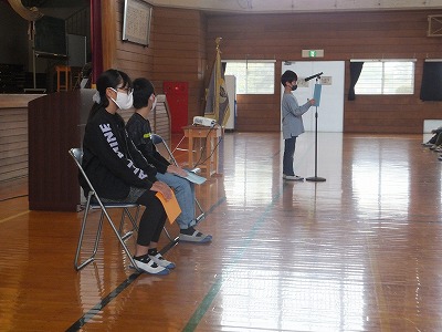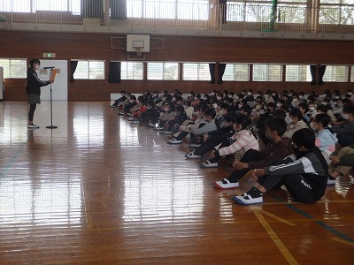 SNSの注意など、具体的に何を気を付ければよいか、学年主任から話を聞きました。事件・事故のない、そして、病気やけがをしない、健康な冬休みを過ごして欲しいものです。年が明けると卒業式まであっという間です。