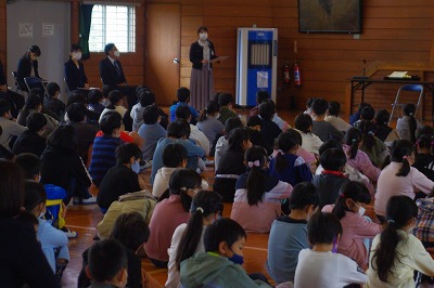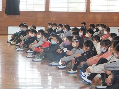 1・2組合同で冬休みの過ごし方について指導しました。
