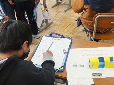 ワークシートに書いたあと、黒板に振り返りを書きました。