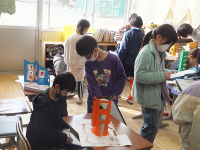 版画もいよいよ刷りに入りました。終わった子は、デザインをやっています。