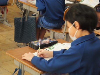 1年生の初めのころから比べれば、集中して書けるようになってきました。成長の様子がうかがえます。