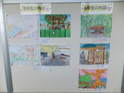 3階の図工室の廊下に、各学年の上手な作品を掲示しています。
