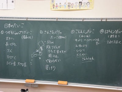 日本には、いろいろな太鼓があります。たたき方も様々です。それらの音を鑑賞しました。