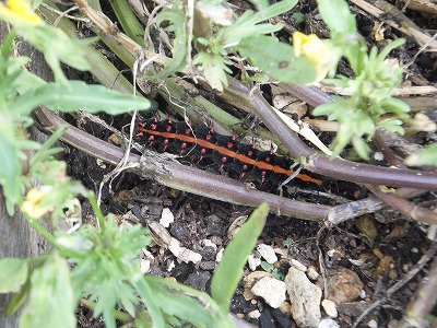 大好きなパンジーの葉を食べていました。毒々しいですが、毒はありません。