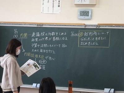 ワークシートに書いたあと、黒板に振り返りを書きました。