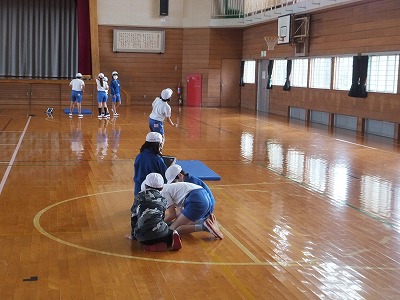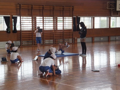今日は、マット運動で前転の練習をしました。