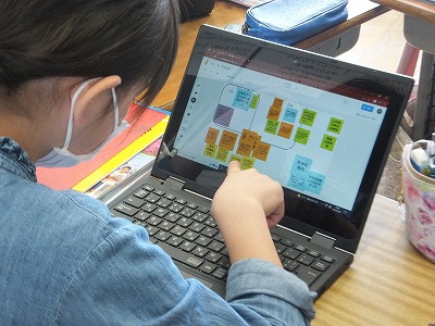 グループで友だち同士の考えを共有し、それを共同でまとめています。