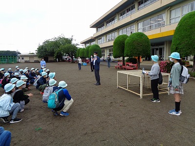 出発式です。校長から「安全」「思いやり」「発見」の話をしました。