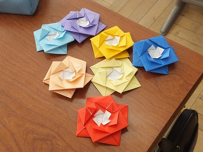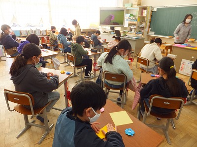 宝は、子供たちが折った折り紙です。教室のいろいろなところに隠しました。