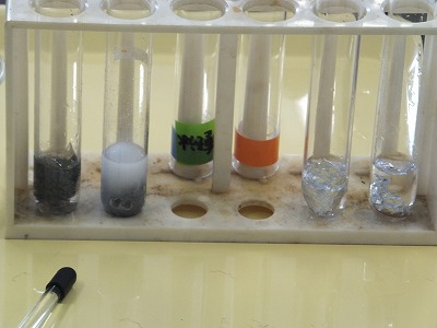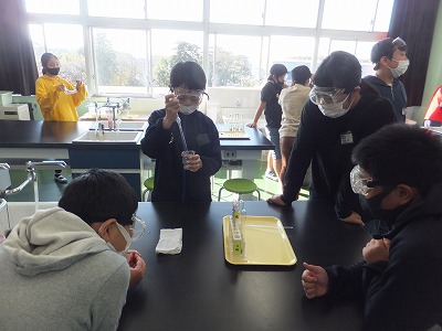 塩酸に入れたスチールウールが激しく反応して、泡が出ています。
