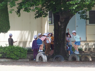 今年度は、月に1回程度「ロングハッスルタイム」と言って、30分間の休み時間を設けています。自由に遊んだり、クラスごとに活動したり、色々な活動ができる時間にしています。今日は、初めてだったので自由遊びでのびのびと子供たちは遊んでいました。