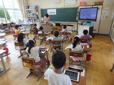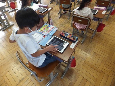 鍵盤ハーモニカの代わりにiPadでドレミの練習をしました。