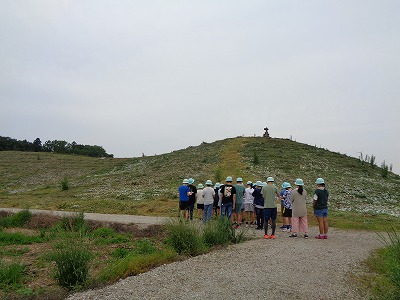 古墳の説明を聞いています。