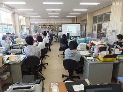 ICTを活用した授業が展開できるように、教職員も日々研修しています。