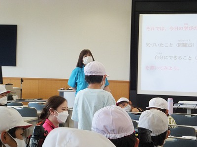ワークシートに書いたあと、黒板に振り返りを書きました。
