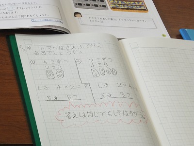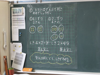 4×2=8、2×4=8 と答えは同じ8だけれど、式は違います。