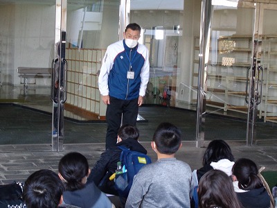 学校長の話です。3月17日に国民栄誉賞を受賞された国枝慎吾さんの話をしました。