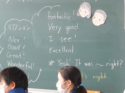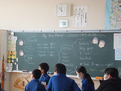 英語で、小学校の一番の思い出の言い方を学習してきました。聞き手のリアクションについても学習しました。