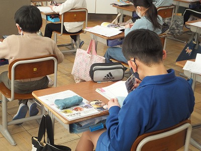 今日の家庭科は、自分でできることが増えたか、1年間を振り返りました。