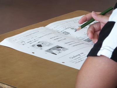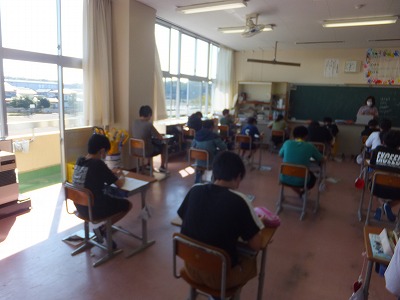 聞き取りには、かなり個人差があるようです。1回聞いただけで答えをすぐに書いている子もいれば、2回聞いても回答できない子、あるいは答えは書いてあるけれど、聞き取れていない子など様々です。