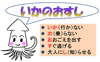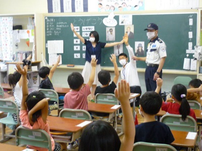 クイズ形式で、不審者対応の勉強をしたので、楽しく「いかのおすし」の意味が理解できたようです。2年生以上も「いかのおすし」を学習していますので、御家庭で話題にしていただけると防犯になると思います。
