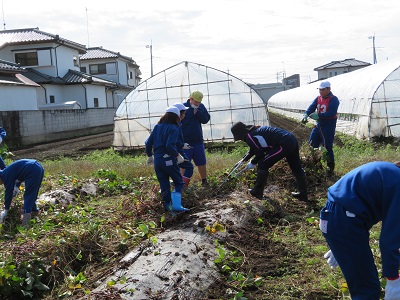 芋掘りに備えて、4年生~6年生でつる切りを行いました。