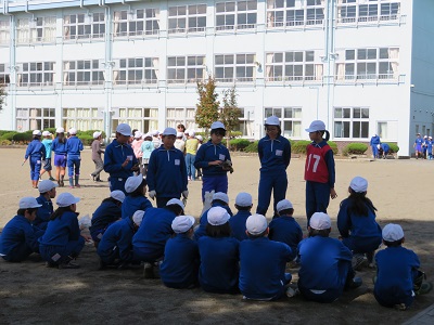 6年生から、「今日はよくできました。次は、芋掘りです。頑張りましょう。」などと、お話があり、解散となりました。
