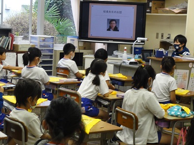 「1学期は、新しい生活様式が身に付きました。2学期は、挨拶をして学校の中だけでなく、地域の方々とも心を通わせていきましょう。」