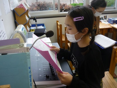 まだ、全校生が集まって集会を開けないため、放送で行いました。