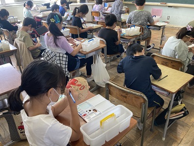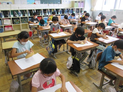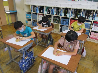 3年生は、上三川町の特産品であるかんぴょうの実を乾かしたふくべに絵を描く「ふくべ細工」を体験しました。