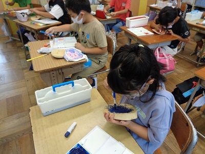 その後、裏面に色を塗ります。好きな色で丁寧に塗りました。