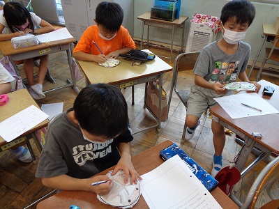 次に、トレーシングペーパーを用いて、ふくべに絵を写しました。