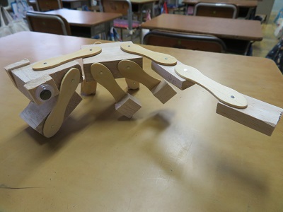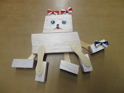 釘と棒を上手に組み合わせて、動く工作ができ上がりました。